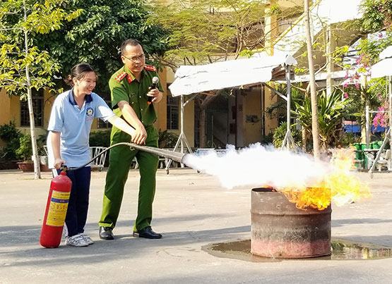 Ngày 15-1, tại Trường THPT Hiệp Bình (Q.Thủ Đức, TP.HCM) đã diễn ra chương trình tuyên truyền – huấn luyện nghiệp vụ phòng cháy chữa cháy và cứu nạn cứu hộ (PCCC&CNCH). Tại đây, toàn thể học sinh trong trường đã được các cán bộ thuộc Phòng Cảnh sát PCCC&CNCH (Công an TP.HCM) chia sẻ về các nguyên nhân gây cháy nổ trong cuộc sống đời thường (xăng dầu, chập điện, ảnh hưởng của thiên tai, rò rỉ gas…) và những phương pháp chữa cháy phù hợp với từng nguyên nhân. Đồng thời, học sinh cũng được hướng dẫn các kỹ năng thoát nạn, giúp đỡ người khác khi có cháy nổ với các tình huống cụ thể, thiết thực. Đặc biệt, trong chương trình, học sinh đã được thực hành sử dụng bình cứu hỏa trong trường hợp có xảy ra hỏa hoạn. Theo một cán bộ Phòng Cảnh sát PCCC&CNCH, khi phát hiện có đám cháy, việc cần làm của người dân là nhanh chóng nhận diện nguyên nhân gây cháy nổ, diện tích cháy nổ và sử dụng các phương pháp chữa cháy phù hợp, đồng thời gọi đến đường dây nóng 114 để được hỗ trợ… Em Nguyễn Trần Quỳnh Hương (lớp 12A2) chia sẻ: “Tại chương trình, em được biết thêm nhiều kỹ năng hay, đặc biệt là kỹ năng bình tĩnh xử trí khi có tình huống cháy nổ xảy ra. Nếu bình tĩnh xử trí thì việc khống chế đám cháy, thoát nạn hay giúp đỡ người khác sẽ mang lại hiệu quả cao hơn”.