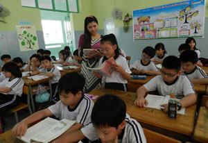 Bằng nhiều hình thức các trường đang cố gắng chăm lo Tết cho giáo viên. Ảnh: Cô Nghiêm Quế Nhi – lớp 4/2 Trường TH Phan Văn Trị, Q.1, TP.HCM đang giảng bài)