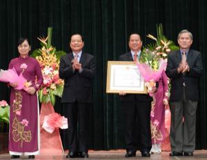 Ông Lê Thanh Hải (trái) – Bí thư Thành ủy TP.HCM trao tặng Huân chương Độc lập hạng ba cho UBKT Thành ủy TP.HCM