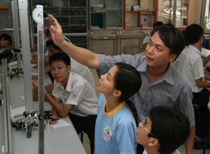 Một tiết thực hành môn vật lý tại Trường THPT Lương Thế Vinh (Q.1, TP.HCM). Ảnh: Anh Khôi |