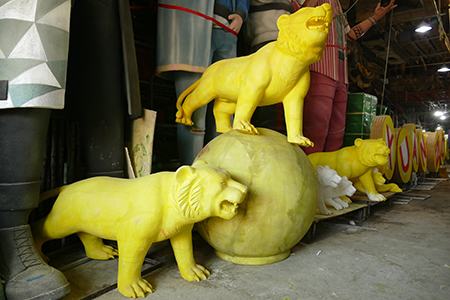 Phụ trách phần quét lớp sơn đầu tiên cho những linh vật hổ nhỏ sau khi các nghệ nhân chế tác hoàn thiện hình dáng, nghệ nhân Nguyễn Thị Cơ khẳng định: “Những chú hổ này được tạo thành bằng chất liệu xốp, để con vật được cứng, không bị khách xem gỡ xốp phải lót lớp màn bên ngoài cho cứng rồi sau đó sơn đường nét mới đẹp được. Hiện tại mọi người đang chạy nước rút để kịp tiến độ”.