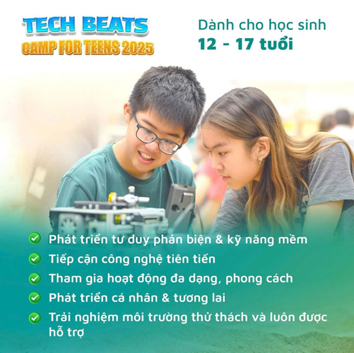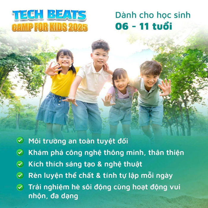 Trại hè nội trú TECH BEATS CAMP 2025 – Hành trình để con chạm vào công nghệ, kết nối tương lai và trưởng thành theo cách riêng của mình.