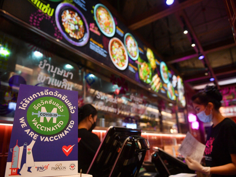 Bangkok mở cửa lại dịch vụ ăn uống tại nhà hàng cho người tiêm vắc xin. Ảnh: Reuters