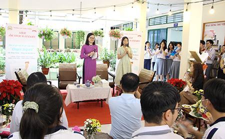 Cũng theo cô Thủy, đây là lần đầu tiên nhà trường tổ chức buổi giao lưu về sách với một hình thức mới mẻ như thế này. Thông qua âm nhạc, qua làm bánh là “cầu nối” để kết nối,thu hút học sinh đến với sách.