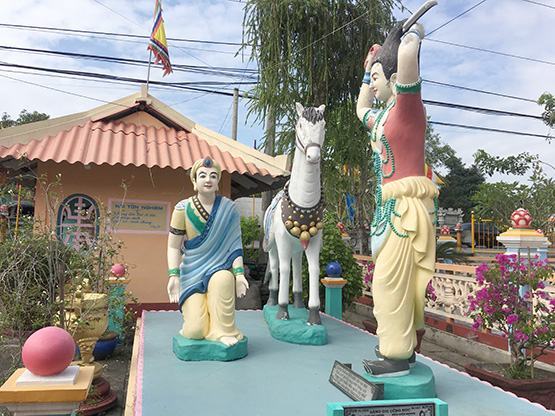 Hình ảnh con ngựa Xích Thố đứng sừng sững bên phải trước cổng chùa, như sẵn sàng ra trận bảo vệ chủ nhân Quan Vũ được thờ trong chùa đã gắn liền với bà con nơi đây từ già cho đến trẻ. Nó như niềm tin, niềm tự hào của bà con khiến ai đi ngang qua cũng phải ngắm nhìn hoặc chui qua dưới bụng ngựa để mong được bình an, hạnh phúc. Đặc biệt, những người đau ốm, bệnh tật hay tới vuốt ve thân ngựa rồi thoa vào chỗ đau trên người như một nghi lễ cầu an, mong được mạnh khỏe và khỏi bệnh.