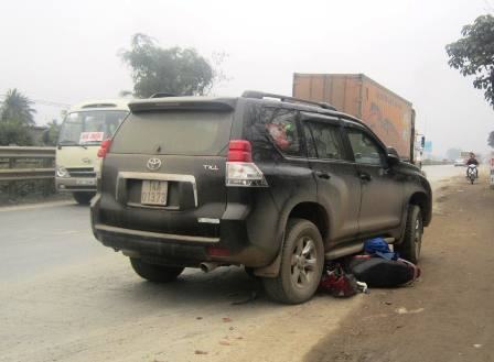 Sau cú va chạm, chiếc xe máy cùng hai thanh niên ngồi trên xe văng sang phía trái đường. Tiếp đó, chiếc “xế hộp” mang BKS 14A-013.73 lưu thông theo hướng Hà Nội – Thanh Hoá lao tới tông vào, kéo lê xe máy khoảng 10m.