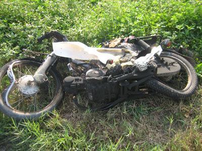 Chiếc xe máy của nạn nhân móp méo, cháy đen