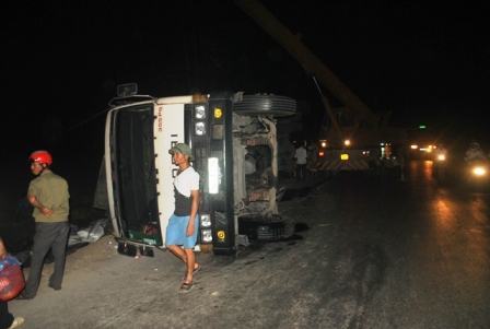 Theo các nhân chứng kể lại, tại thời điểm trên, chiếc xe tải mang BKS 34L-5629 đang chạy theo hướng Nam – Bắc, trên xe chở đầy vải may mặc. Gặp đoạn đường xấu, trục sau của xe bị gãy đôi khiến hai bánh bật văng ra ngoài, chiếc xe chao đảo rồi lật nghiêng ven đường.