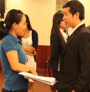 Anh Trần Nguyễn Lê Văn trao đổi với bạn trẻ trong một buổi nói chuyện về vấn đề khởi nghiệp