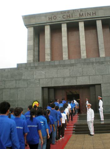 Đoàn Thanh niên trong nước và thanh niên kiều bào đang cùng nhau vào Lăng viếng Bác