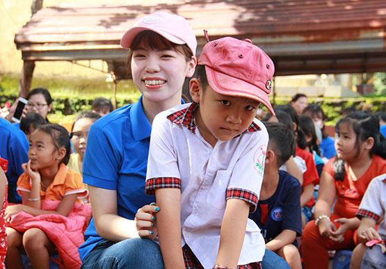 Trẻ em vùng biên cương trong vòng tay trìu mến của nữ sinh viên Nhật Bản