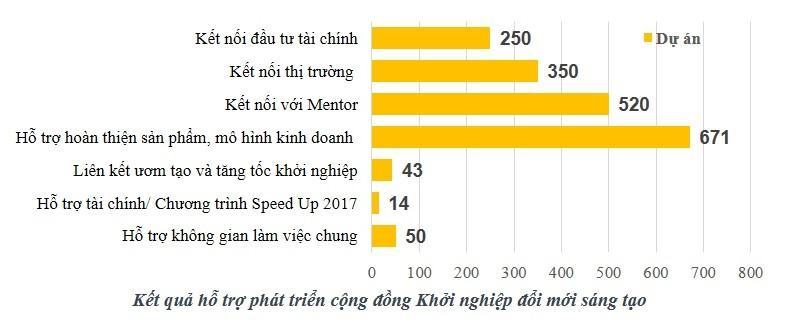Song song với việc xây dựng các không gian hỗ trợ khởi nghiệp đổi mới sáng tạo, 24 cơ sở ươm tạo doanh nghiệp với tổng mặt bằng trên 22.000 m2, trong đó trên 50% từ nguồn xã hội hóa cũng được hình thành và kết nối.