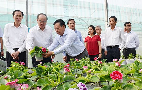 | Bí thư Thành ủy Nguyễn Thiện Nhân thăm quan mô hình sản xuất nông nghiệp công nghệ cao |
