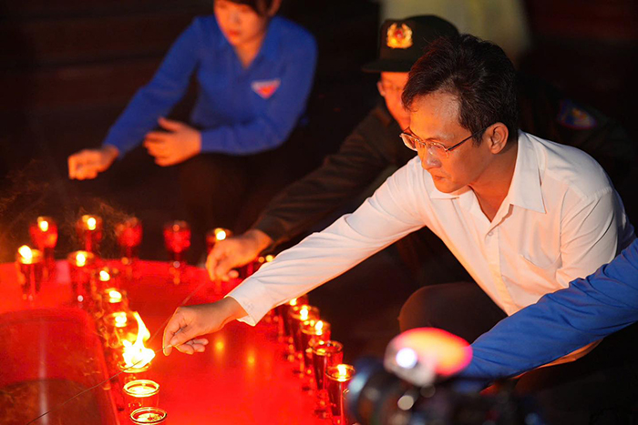 Ngay sau đó, các đại biểu, lãnh đạo cùng đoàn viên, thanh niên đã cùng dâng hoa, dâng hương, thắp lên hàng ngàn ngọn nến tri ân tại hơn 14 nghìn ngôi mộ tại Nghĩa trang Liệt sĩ TP.HCM.
