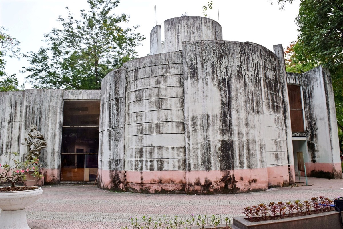 Cửa vào tòa nhà là miệng vỏ ốc, tòa nhà xoắn tròn với lối đi mê cung dẫn vào lòng trong cùng của vỏ ốc là nhà tròn có 8 tấm gương dị dạng. Phía trước mặt còn có bức tượng Nữ thần biển tì tay lên mỏ neo đứng duyên dáng bên cánh trái của mặt tiền nhìn về phía cổng chính của Công viên Thống Nhất (trên đường Trần Nhân Tông).