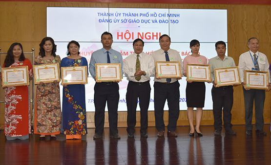 Dịp này, Ban Chấp hành Đảng bộ Sở GD-ĐT TP.HCM đã tặng giấy khen cho 27 tập thể (trong đó có Báo Giáo dục TP.HCM) và 35 cá nhân thực hiện tốt việc “Học tập và làm theo tư tưởng, đạo đức phong cách Hồ Chí Minh” năm 2018-2019.