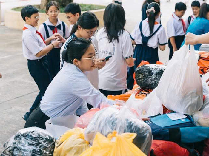 “Bằng tinh thần tương thân tương ái, phong trào phát động nhận được sự hưởng ứng tích cực của toàn thể cán bộ quản lý, giáo viên, nhân viên, phụ huynh, học sinh toàn trường. Không chỉ đóng góp, giáo viên và các em học sinh còn xúm vào phân loại, vận chuyển hàng cứu trợ đến nơi tiếp nhận, với một mong muốn duy nhất là san sẻ phần nào khó khăn với bà con vùng lũ” – cô Trúc rưng rưng.