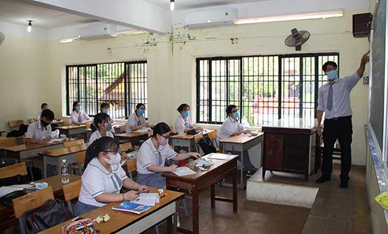 Thầy Huỳnh Thanh Phú – Hiệu trưởng Trường THPT Nguyễn Du – nhận định, để đảm bảo vừa hoàn tất chương trình năm học, vừa bổ sung những kiến thức “hổng” cho HS, vừa siết an toàn trường học, mỗi thầy cô phải “căng mình” trong các tiết học. “Giờ học mùa dịch cả GV, HS đều phải đeo khẩu trang, máy lạnh lại không được bật trong khi đó lại phải giữ khoảng cách giữa thầy và trò. Như vậy, mỗi HS phải thật sự nghiêm túc, tập trung cao độ trong giờ học để nghe thầy cô giảng bài. Về phía GV, thầy cô phải thay đổi phương pháp dạy, không chỉ cô đọng giáo án theo chủ đề mà trong tiết học phải giữ được tâm lý hài hòa cho HS. Đặc biệt, cả phụ huynh cũng phải đồng hành tuyệt đối trong việc học mùa dịch”.