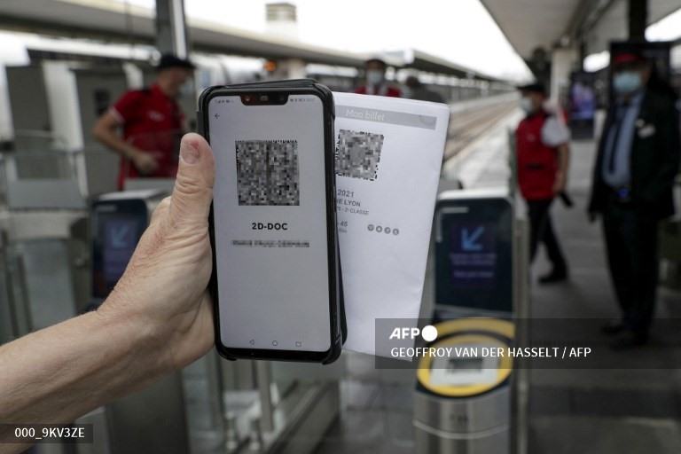 Theo quy định được Tổng thống Macron công bố ngày 12.7, người dân Pháp kể từ tháng 8 được yêu cầu phải mang theo thẻ thông hành COVID-19 để được vào quán bar, nhà hàng, rạp chiếu phim và nhà hát cũng như nhiều không gian công cộng ngoài trời. Thẻ thông hành chứa thông tin về việc tiêm chủng, xét nghiệm âm tính hoặc từng mắc COVID-19 của mỗi cá nhân, cũng được yêu cầu phải xuất trình khi di chuyển bằng phương tiện công cộng hoặc đến cơ sở y tế. Người lao động, bao gồm cả nhân viên y tế bắt buộc phải tiêm chủng vaccine COVID-19 trước một thời hạn nhất định do chính phủ đặt ra.