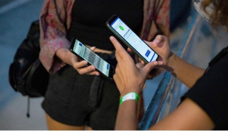 Một người dân Italia xuất trình thẻ xanh COVID-19 để tham dự một buổi hòa nhạc.