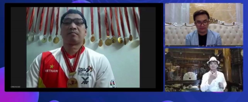 Vận động viên Trần Phúc đạt và NSƯT Xuân Bắc, MC Đại Nghĩa trong buổi đấu giá