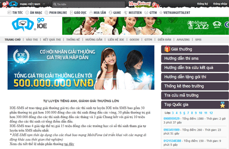 Đây là một hình thức tự luyện hoàn toàn mới của cuộc thi Olympic tiếng Anh trên internet (IOE). Với phương pháp này, các em học sinh có thể ôn luyện tiếng Anh mọi lúc mọi nơi, đồng thời có cơ hội nhận nhiều giải thưởng giá trị hấp dẫn. Cuộc thi bước đầu được triển khai với thuê bao di động của nhà mạng MobiFone. Để đăng ký tham dự cuộc thi IOE SMS, học sinh chỉ cần soạn tin DK Khối Lớp gửi 9027 (ví dụ: soạn DK 5 gửi 9027 để đăng ký dự thi khối lớp 5). Tham gia cuộc thi IOE SMS, học sinh có cơ hội nhận nhiều giải thưởng giá trị từ nhà tài trợ MobiFone. Tổng giá trị giải thưởng của cuộc thi lên tới hơn 500 triệu đồng với cơ cấu giải tuần, giải tháng, giải chung cuộc và giải tập thể. Cuộc thi IOE do Bộ Giáo dục và Đào tạo cùng Mạng Việt Nam go.vn tổ chức là cuộc thi trắc nghiệm về kiến thức tiếng Anh trên Internet lớn nhất tại Việt Nam hiện nay. Sau hơn 2 năm tổ chức, cuộc thi IOE có khoảng 8 triệu thành viên đăng ký tham dự, triển khai tại hơn 33 nghìn trường học các cấp trên cả nước. Nay với hình thức tự luyện qua di động, IOE SMS đã mở rộng cơ hội tiếp cận cuộc thi cho các em học sinh, xóa đi khoảng cách địa lý, vùng miền, mang kiến thức tiếng Anh đến với các em dù ở vùng sâu vùng xa trên khắp cả nước.