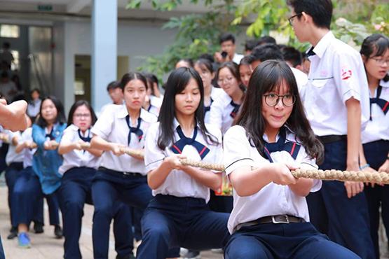 Nữ sinh Trường THPT Gia Định hào hứng thi kéo co