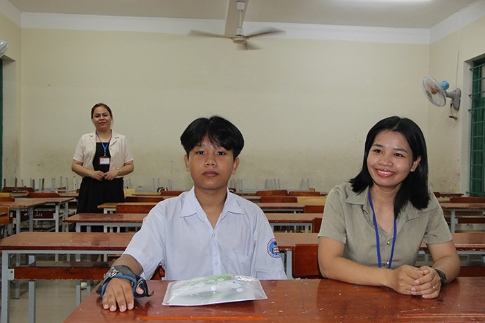 “Thí sinh được sắp xếp thi tại phòng thi dự phòng, bố trí 2 cán bộ coi thi, giám sát và 1 giáo viên hỗ trợ làm bài thi cho thí sinh. Đồng thời trong phòng thi có trang bị thêm 1 camera và máy ghi âm để ghi âm, ghi hình lại toàn bộ quá trình làm bài của thí sinh nhằm đảm bảo quyền lợi tối đa cho thí sinh. Riêng giáo viên hỗ trợ thí sinh làm bài thi thì sẽ bố trí giáo viên “lệch” môn thi với thí sinh” – thầy Bình cho hay.