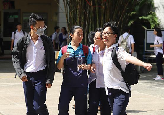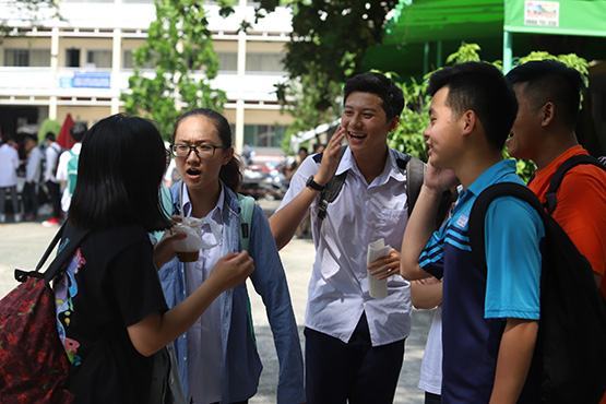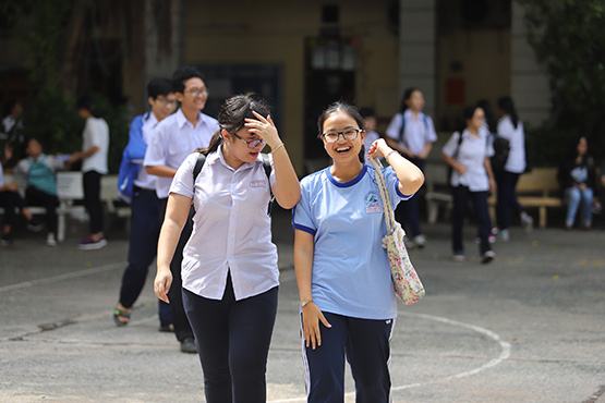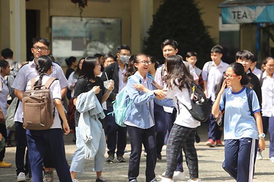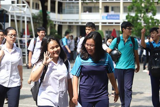 Sau giờ thi môn ngữ văn, thí sinh vui vẻ ra về tại điểm thi trường THPT Bùi Thị Xuân, TPHCM