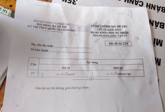 | Một mã đề vật lý đã được Bộ GD-ĐT đính kèm sửa đổi |