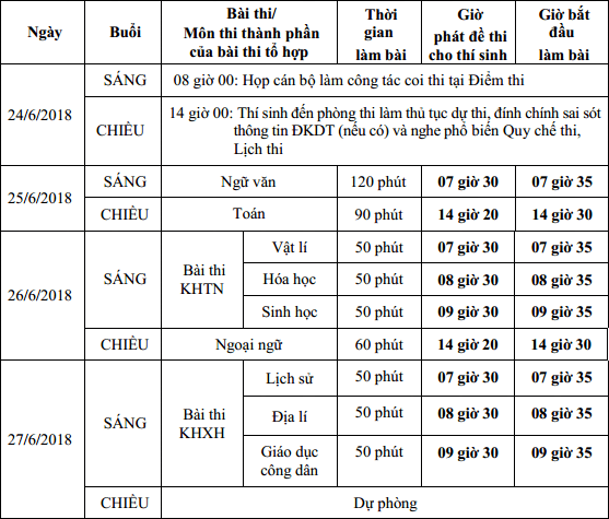 | Lịch thi cụ thể kỳ thi THPT quốc gia năm nay |