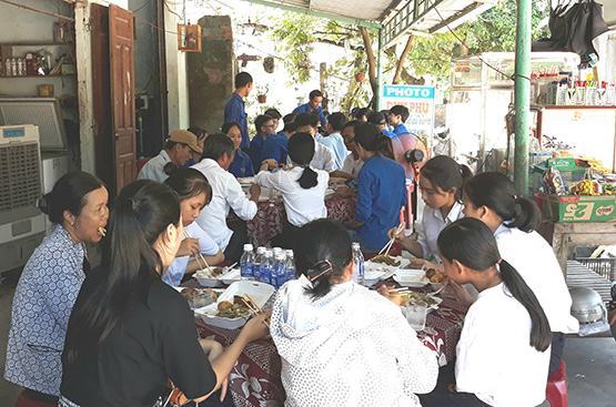 Bữa cơm trưa miễn phí phục vụ thí sinh và phụ huynh tại điểm thi THPT Bùi Dục Tài (Quảng Trị). Ảnh: V.Y