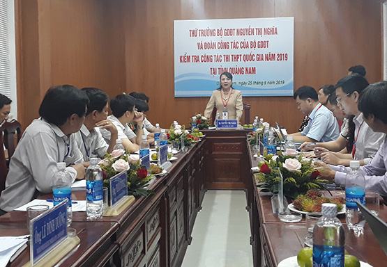Thứ trưởng Nguyễn Thị Nghĩa cùng đoàn công tác kiểm tra công tác thi THPT quốc gia 2019 tại Quảng Nam. Ảnh: Vĩnh Yên