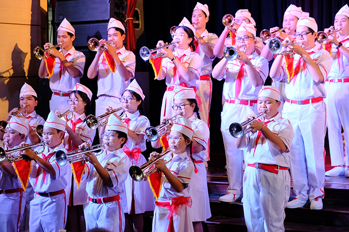 Sau đó, bài hát “Em yêu Tổ quốc Việt Nam” lại vang lên. Đây là một ca khúc rất quen thuộc với các em thiếu nhi. Với giai điệu vui tươi, rộn ràng, toát lên niềm tự hào của đội viên học sinh thành phố về đất nước mến yêu của mình. Càng kính yêu càng tự hào chúng ta quyết tâm ra sức thi đua, học tập tốt rèn luyện chăm, là con ngoan, trò giỏi, bạn tốt xứng đáng là người công dân nhỏ tuổi của thành phố mang tên Bác Hồ kính yêu, người chủ tương lai của đất nước Việt Nam anh hùng.
