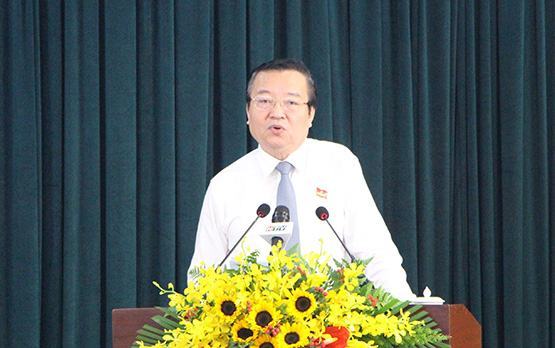 Ông Lê Hồng Sơn – Giám đốc Sở GD-ĐT TP.HCM – báo cáo công tác chuẩn bị năm học 2020-2021 tại Kỳ họp thứ 20 HĐND TP.HCM khóa IX, diễn ra ngày 9-7