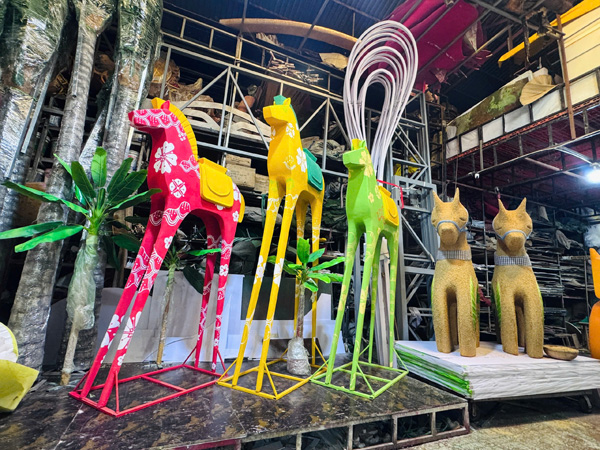 2. Trong khi đó, tại xưởng của anh Đỗ Thế Bình không khí làm việc diễn ra khẩn trương để hoàn thành linh vật Ngọ cho Đường hoa Tết Nguyễn Huệ Bính Ngọ 2026. Năm nay, xưởng anh Bình đảm nhận cổng vòm đại cảnh cuối “Giang sơn cẩm tú” cùng 6 linh vật ngựa nhỏ. Đại cảnh “Giang sơn cẩm tú” quy tụ 9 ngựa vĩnh cửu trong tư thế phi nước đại. Trong đó, 3 ngựa chính được tạo hình nguyên khối, biểu trưng cho TP.HCM, Vũng Tàu và Bình Dương, thể hiện tinh thần mạnh mẽ, bền bỉ và khát vọng vươn lên. 6 ngựa còn lại đại diện cho những khía cạnh năng động, sáng tạo và hội nhập của TP, tạo nên một tổng thể hài hòa, mang đậm ý nghĩa biểu trưng.