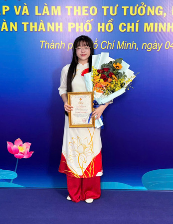 Là gương mặt trẻ đoạt Giải thưởng sáng tác, quảng bá tác phẩm văn học, nghệ thuật, báo chí chủ đề “Học tập và làm theo tư tưởng, đạo đức, phong cách Hồ Chí Minh” trên địa bàn TP.HCM đợt 2, giai đoạn 2021-2025 mới đây, em Dương Kim Xuân (cựu học sinh Trường THPT Lương Thế Vinh, hiện là sinh viên) vô cùng vinh dự và tự hào vì giải thưởng sẽ góp phần tiếp thêm sức mạnh cho em trong công việc lẫn cuộc sống. Tác phẩm đoạt giải của Xuân thuộc thể loại thơ lục bát – thể thơ mang âm hưởng truyền thống của dân tộc mang tên “Noi gương Bác Hồ”. Tác phẩm được ra đời trong lúc em đang ôn luyện cho kỳ thi học sinh giỏi văn cấp TP. Nhờ có sự động viên tinh thần của các thầy cô và tấm lòng biết ơn công lao to lớn của Bác, em đã hoàn thành được tác phẩm của mình ngập tràn cảm xúc. “Bác đi để lại tình thương/ Cho bao thế hệ noi gương sáng ngời/ Một thời mưa đạn, bom rơi/ Hôm nay đất nước rạng ngời thịnh vinh” (trích từ bài thơ của Xuân).