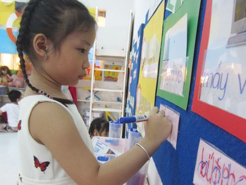 Học sinh lớp lá đang chuẩn bị kỹ năng để vào lớp 1 – Ảnh: Thảo Quyên
