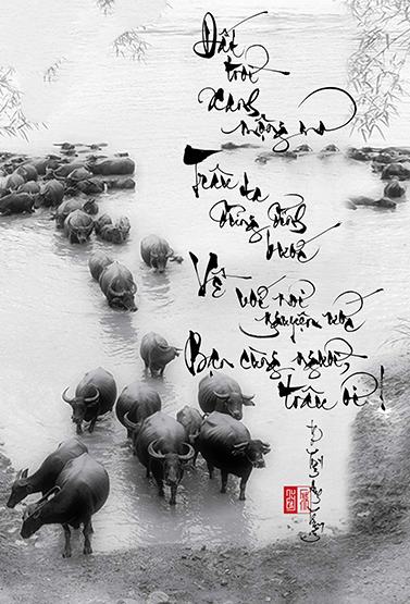 Hình 2: Ngẩng đầu im lặng vấn vương/ Ung dung trâu bước trên đường đầy xuân