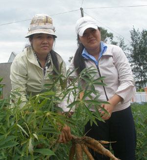Ngoài giờ học, Tôn Nữ Thùy Linh (bên phải) còn phụ giúp mẹ làm nông