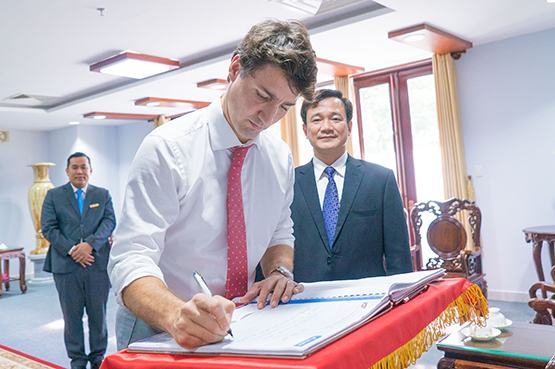 Thủ tướng Canada cũng chia sẻ lại những kỷ niệm trong lần đầu tiên đặt chấn đến Việt Nam năm 1995, ấn tượng với sự tiếp đón nồng nhiệt của người dân Việt Nam lúc đó. Đặc biệt, Thủ tướng Justin Trudeau trải lòng về những khoảng thời gian khó khăn đã qua, nhất là lúc phải đấu tranh lựa chọn giữa con đường sư phạm yêu thích với kỳ vọng của của gia đình và xã hội mong muốn ông “nối dõi” cha trở thành chính trị gia.