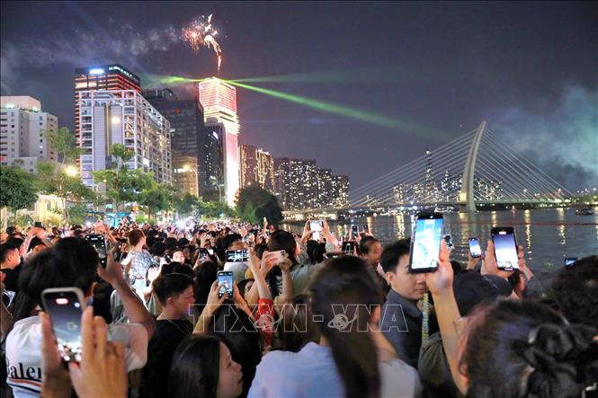 Đông đảo người dân tập trung ở khu vực bến Bạch Đằng (phường Sài Gòn, Thành phố Hồ Chí Minh) để đón xem màn pháo hoa mừng năm mới 2026. Ảnh: Thu Hương/TTXVN