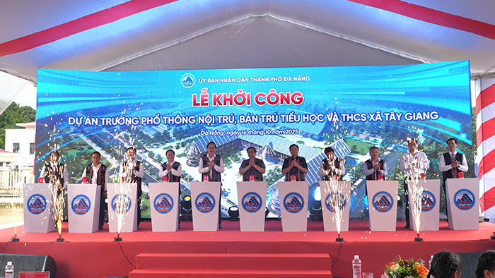 Chiều 16-10, Thủ tướng Chính phủ Phạm Minh Chính đã dự lễ khởi công Trường phổ thông nội trú, bán trú tiểu học và trung học cơ sở xã Tây Giang, TP.Đà Nẵng. Đây là một trong 6 trường được chọn triển khai chủ trương xây dựng trường học cho các xã biên giới theo Thông báo số 81-TB/TW ngày 18-7-2025 của Bộ Chính trị.
