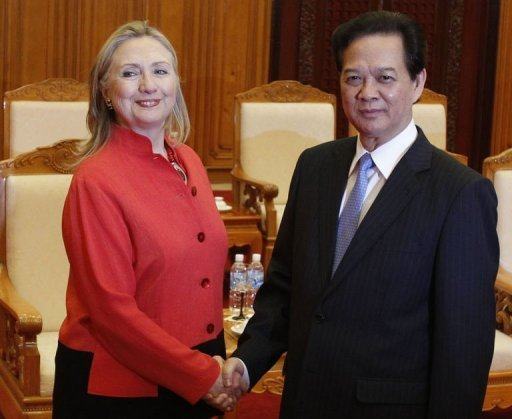 Thủ tướng Nguyễn Tấn Dũng và Ngoại trưởng Clinton cũng trao đổi về những diễn biến gần đây ở Biển Đông và hợp tác tiểu vùng sông Mê Công. Hai bên nhấn mạnh tầm quan trọng của việc duy trì hòa bình, ổn định và hợp tác, đảm bảo tự do an ninh, an toàn hàng hải ở Biển Đông; khẳng định những tranh chấp chủ quyền ở Biển Đông cần được giải quyết bằng các biện pháp hòa bình, trên cơ sở luật pháp quốc tế, nhất là Công ước của Liên Hợp Quốc về Luật biển 1982, nghiêm túc thực hiện Tuyên bố về ứng xử của các bên ở Biển Đông (DOC) hướng tới Bộ quy tắc ứng xử ở biển Đông ( COC).