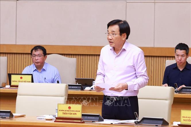 Bộ trưởng, Chủ nhiệm Văn phòng Chính phủ Trần Văn Sơn phát biểu. Ảnh: Dương Giang/TTXVN