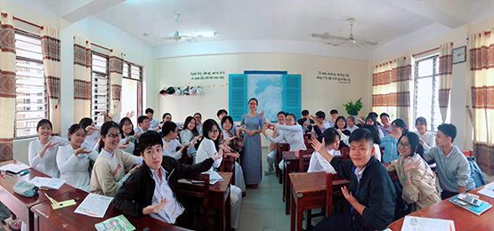 Cô Phm Th Ái Vân và hc sinh trong mt tiết hc theo d án