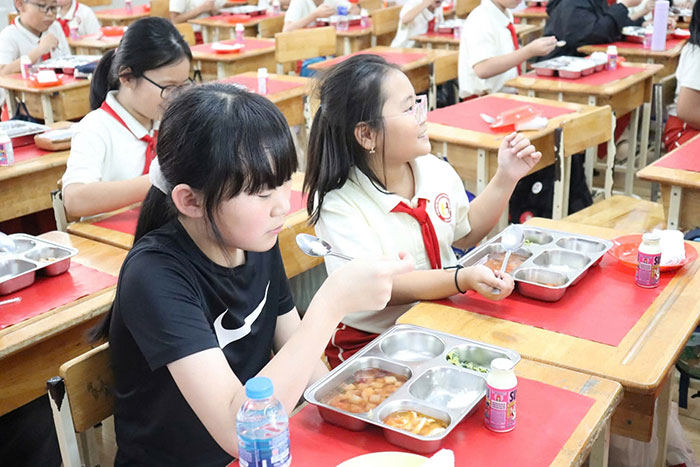 Học sinh Trường Tiểu học Nguyễn Thái Học, phường Bến Thành, TP.HCM và Trường Tiểu học Suncheon Dongsan (Jeollanamdo) cùng ăn, học trong chương trình giao lưu mới đây