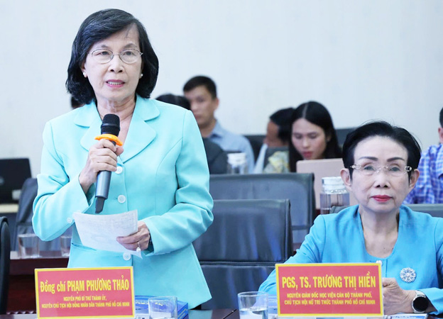Bà Phạm Phương Thảo (nguyên Phó Bí thư Thành ủy, nguyên Chủ tịch Hội đồng nhân dân TP.HCM) nêu ý kiến tại hội thảo