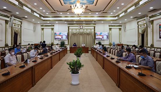 Quang cảnh cuộc họp giao ban trực tuyến trưa 30-1 về tình hình dịch bệnh Covid-19 diễn ra trên địa bàn TP.HCM (Ảnh: TTBC)