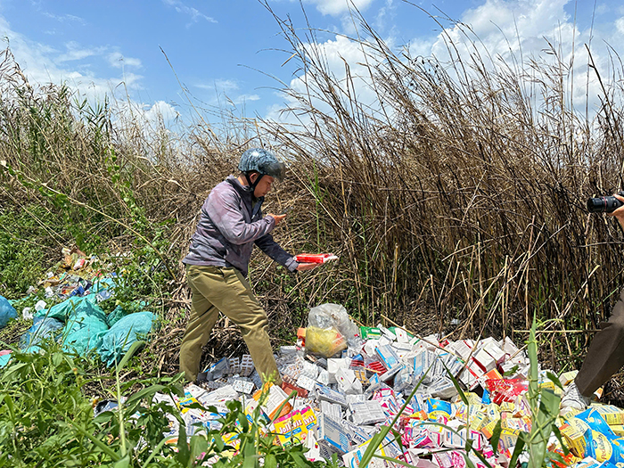 Sáng 6-6, người dân sinh sống dọc tuyến đường Nguyễn Văn Linh (huyện Bình Chánh, TP.HCM) phát hiện hàng nghìn sản phẩm là thuốc, dược phẩm và thực phẩm chức năng bị đổ trộm tại nhiều bãi đất trống trong khu vực.